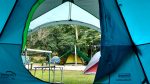 Ficamos as 3 primeiras noites no Caravela Camping. A área de camping fica bem ao lado do rio e é toda gramada com vários pontos de luz e energia elétrica. A cozinha comunitária é bem básica e conta com fogão, geladeira, pia e churrasqueira. Os banheiros são unissex, 5 vasos e 5 duchas quentes. Conta com 2 piscinas, e um parque com atividades de aventura como parede de escalada, arvorismo e tirolesa. É uma delícia pegar no sono escutando o som das águas que descem o rio!