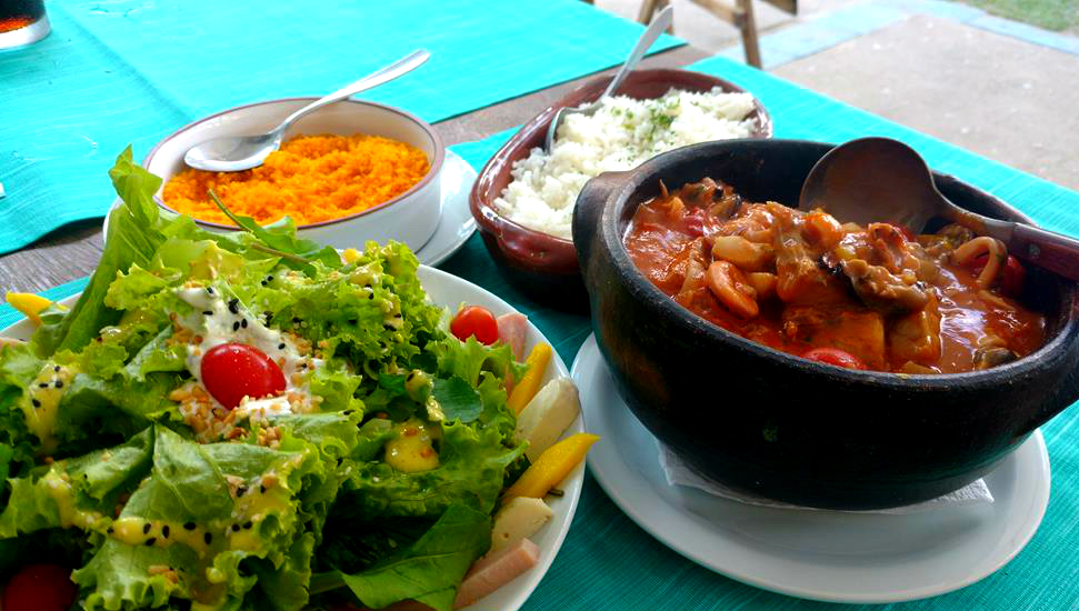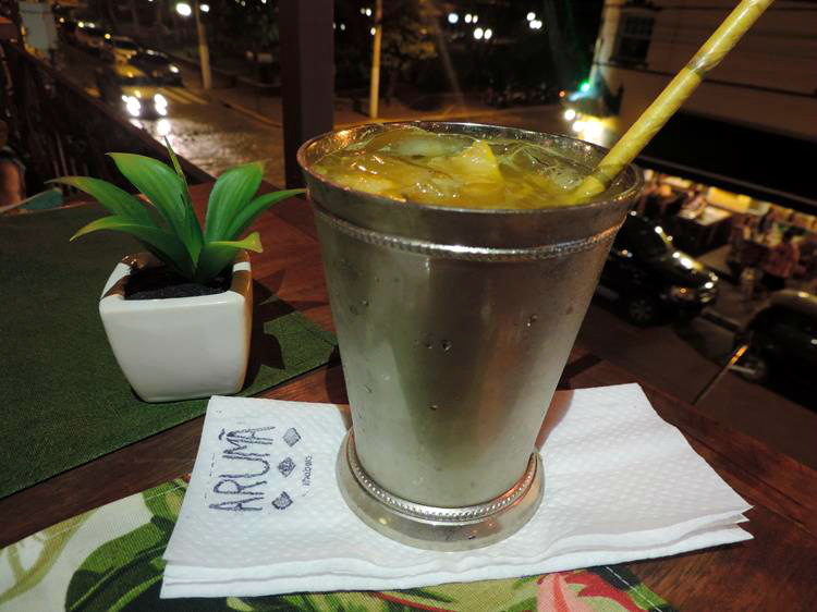 Para abrir o apetite provamos 2 dos drinks especiais da casa a Serenata Del Pablo (limão siciliano, tequila, mel e alecrim) e Paixão Mulata (cachaça, limão, rapadura, maracujá e gengibre), sabores exóticos e refrescantes! De entrada fomos de Frito Misto que é um mix de frutos do mar com lula, camarão e peixe empanados acompanhado de maionese de açaí que estava muito bom. Os pratos principais foram Green Fish (filé de linguado assado com crosta de castanha do pará acompanhado de purê de ervilha e legumes salteados) e a Moqueca Arumã (camarão, molho a base de leite de coco e azeite de dendê com pedaços de banana da terra acompanhado de arroz e farofa da vó. O Arumã é um daqueles lugares que conseguem transformar gastronomia em obra de arte!
