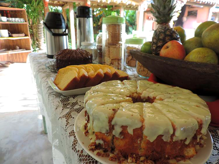 Logo ao lado do camping fica a Pousada Caravela Bromélias que pela manhã serve um café da manhã muito farto e saboroso com direito a bolo quentinho e ovos mexidos feitos na hora!
