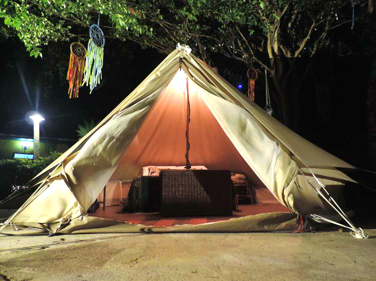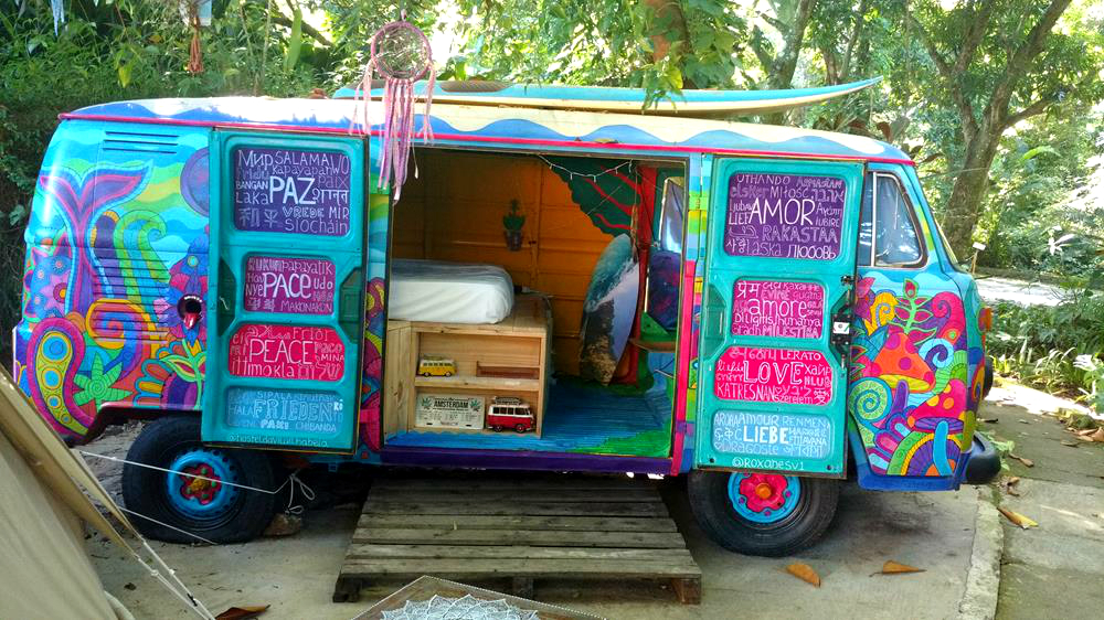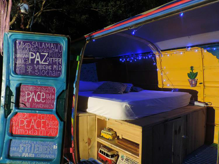 Logo na chegada já ficamos apaixonados pelo ambiente e também pelas Cabanas que são uma das opções de hospedagens oferecidas pelo local. As Cabanas são um tipo de barraca de luxo com cama de casal e ar condicionado! Além das Cabanas o Hostel oferece hospedagem em quartos duplos, coletivos e tem até uma Kombi, carinhosamente chamada de Kombizinha que foi transformada em um aconchegante quarto!
