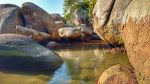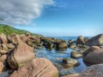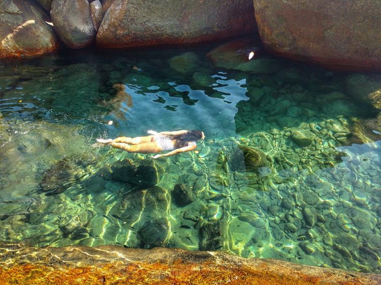 As Piscinas Naturais da Ponta da Flecha ficam em frente a um condomínio e o acesso é feito apenas por trilha ou barco. Fomos pela trilha e passamos uma tarde incrível mergulhando em meio aos peixes ficando maravilhados a cada nova piscina que encontrávamos ao caminhar pelas enormes pedras à beira mar!