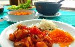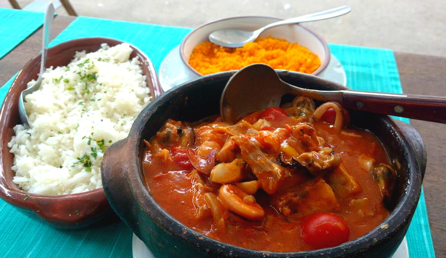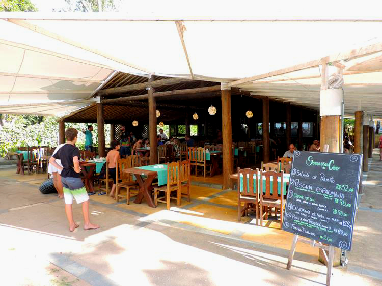 A praia abriga um dos melhores restaurantes da Ilha, o Espaço Tangará que é um misto de bar de praia, restaurante e espaço para eventos. No local o visitante pode desfrutar de alguns serviços, como slackline, ducha de água doce, banheiros, fraldário, além de espaço para bike e local especial para cachorros. Gastronomia mediterrânea com influência caiçara comandada pelo premiado Chef Tonhão! Provamos a Caldeirada de Frutos do Mar que estava incrível.