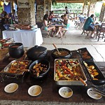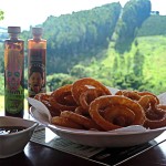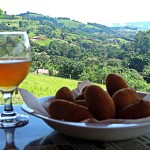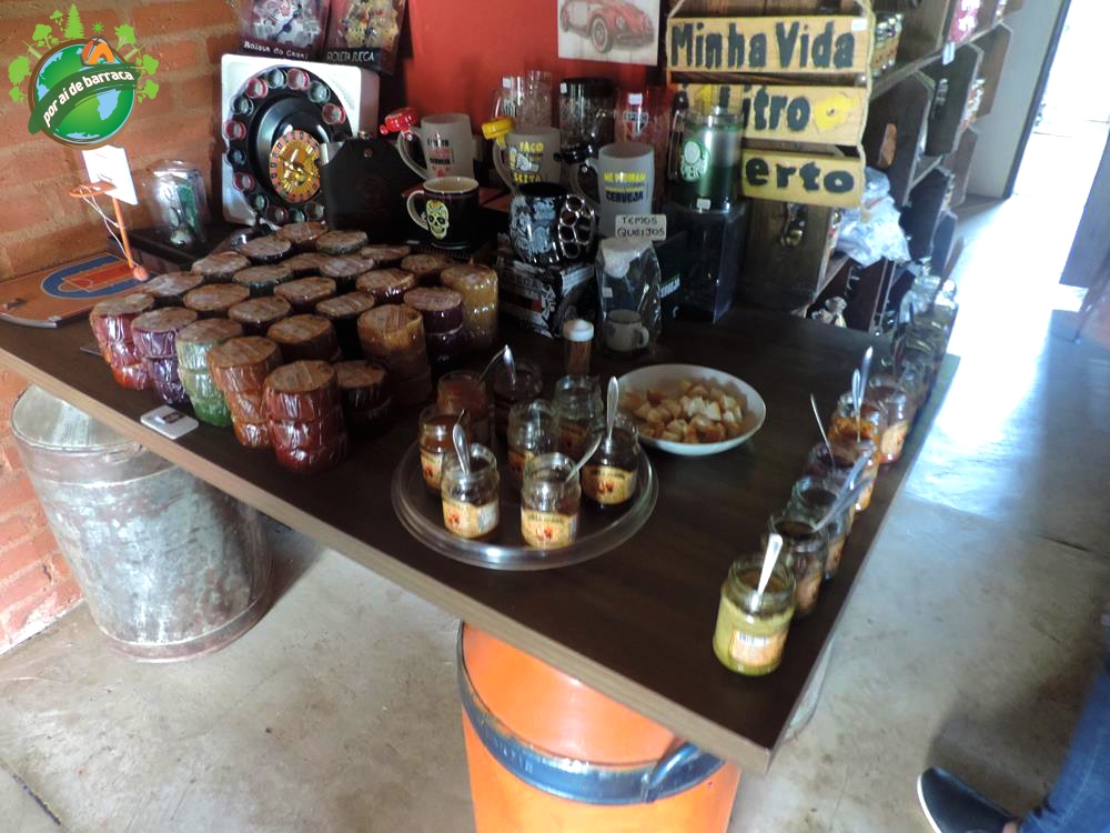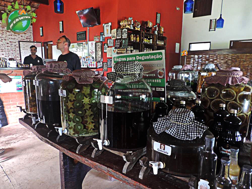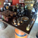 Já no meio da tarde fomos até a Cachaçaria Santo Mé, que além de diversos tipos de cachaça, licores, geléias, pimentas e queijos, serve porções deliciosas! Após degustarmos algumas cachaças, seguimos as dicas do David que é o proprietário e provamos os Quadradinhos de Mandioca, o Bolinho de Abóbora Recheado de Pimentas, as Cebolas Fritas com Molho Barbecue e a Caipirinha de Lichia com Manjericão. Tudo estava excelente!