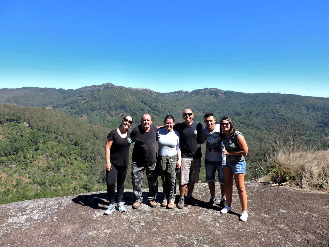 Nossa atividade matinal foi um passeio para conhecer a estrutura e uma caminhada para a Pedra Pequena.Quem comanda as trilhas é o Mike que é um dos proprietários do local e foi nosso guia pelo passeio. A caminhada até a Pedra Pequena é um pouco ímgrime dura cerca de 2h (ida e volta) e passa por 3 mirantes com vistas maravilhosas que fazem valer a pena! Contamos com a companhia do Dário, da Camila, da Solange e Do Sr. Domingos que deixou o passeio ainda mais legal com suas piadas e seu auto astral contagiante!