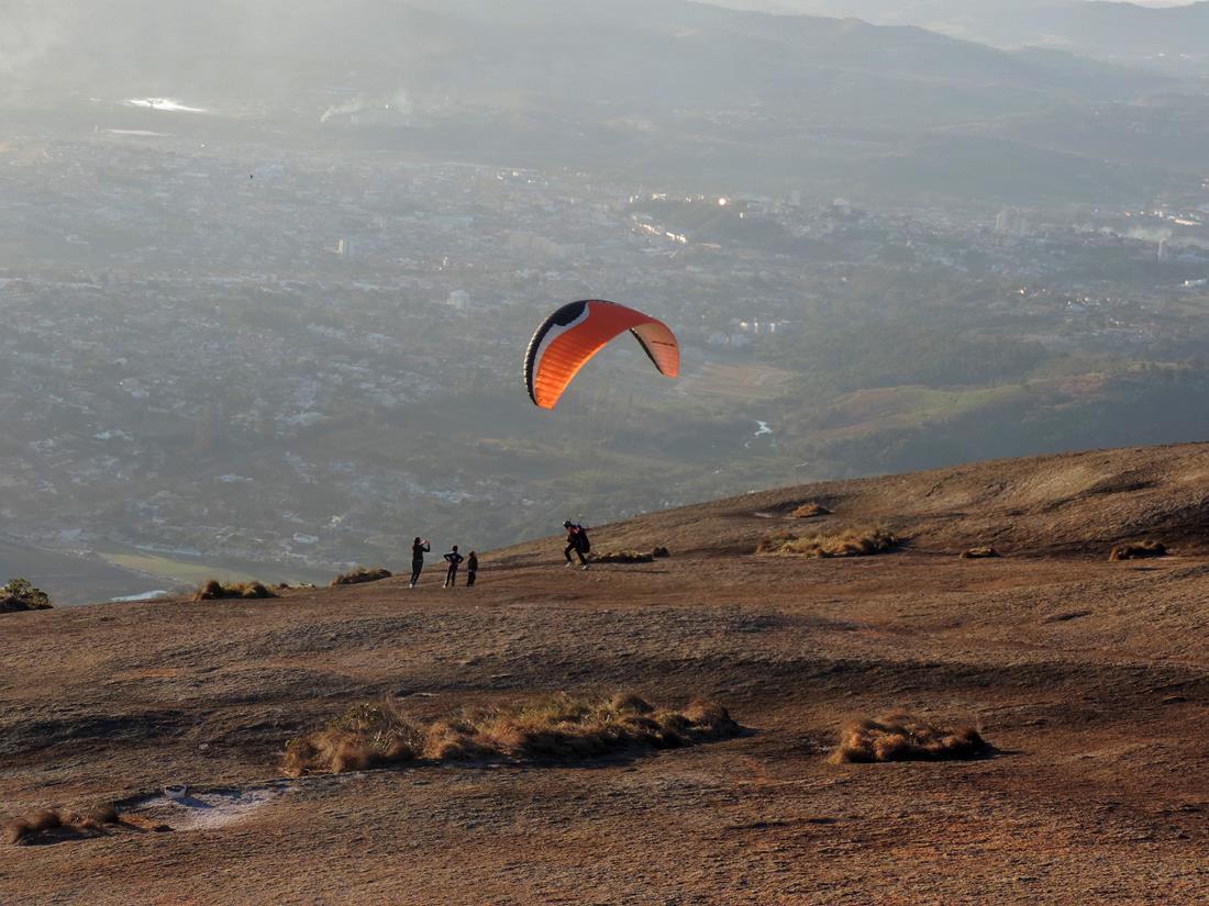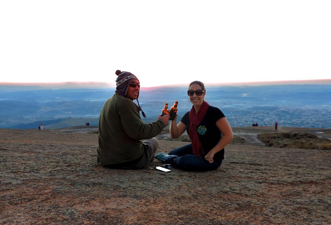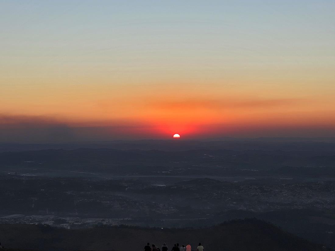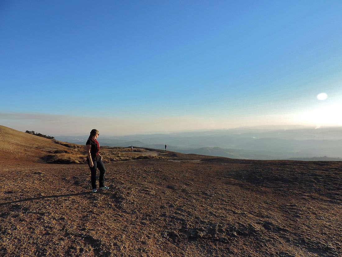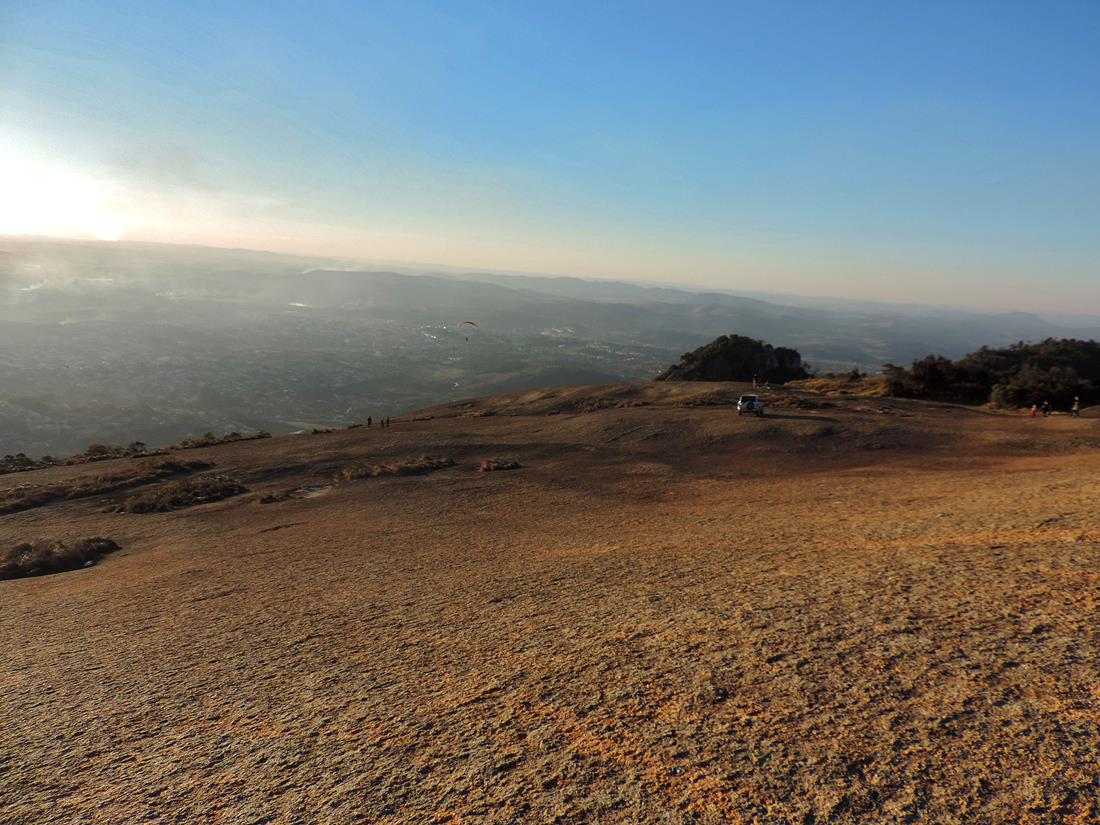 No final da tarde subimos (de carro) até os 1450 metros de altitude da Pedra Grande de onde pudemos apreciar um maravilhoso pôr do sol.