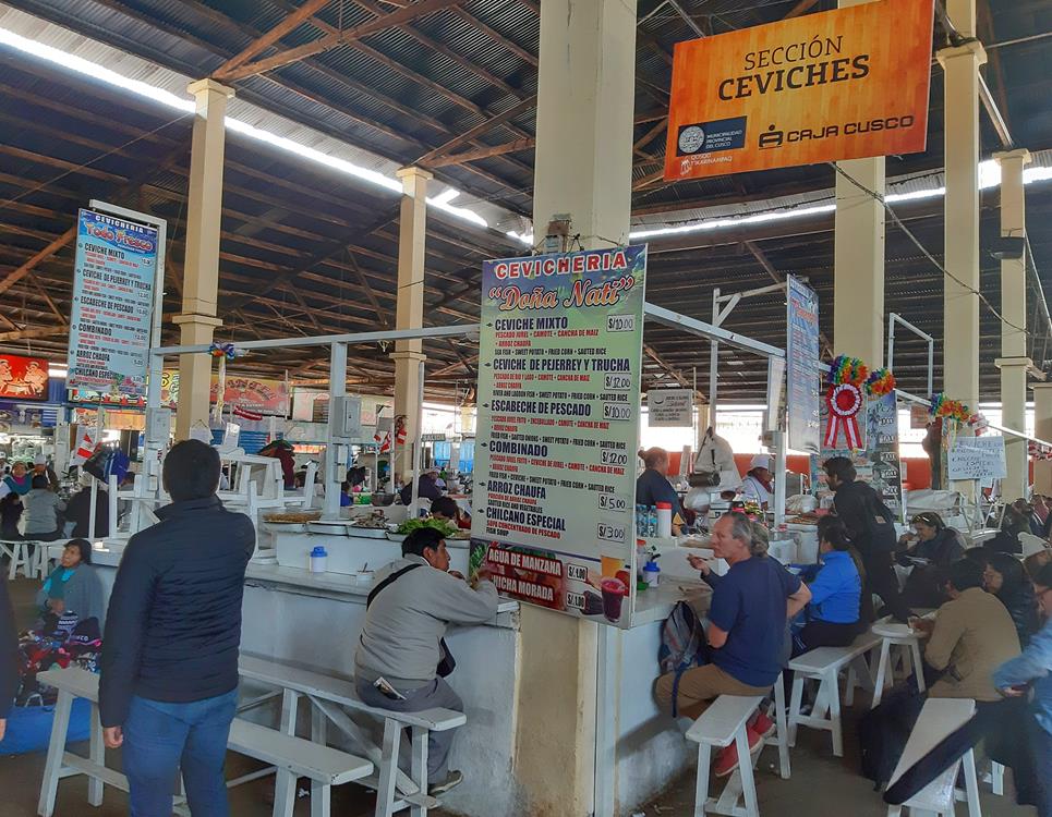 O Mercado Central de San Pedro de Cusco é um mercado com artigos que vão desde produtos locais e carnes até roupas e incensos. O mercado, que está entre os favoritos da população local e dos turistas, é um local de entretenimento para compradores e qualquer pessoa curiosa sobre a cultura local. Nós não tivemos coragem de provar as comidas servidas no mercado, mas ficamos impressionados com as variedades.