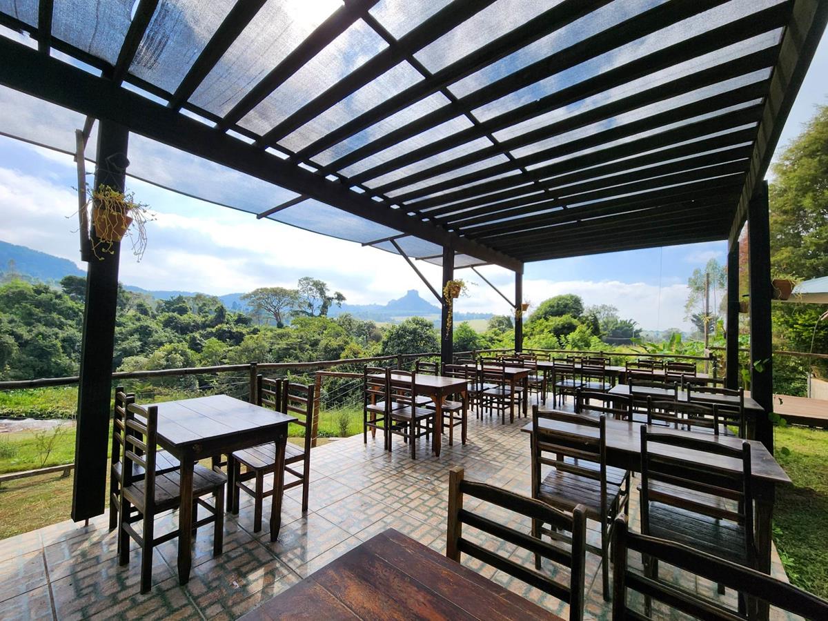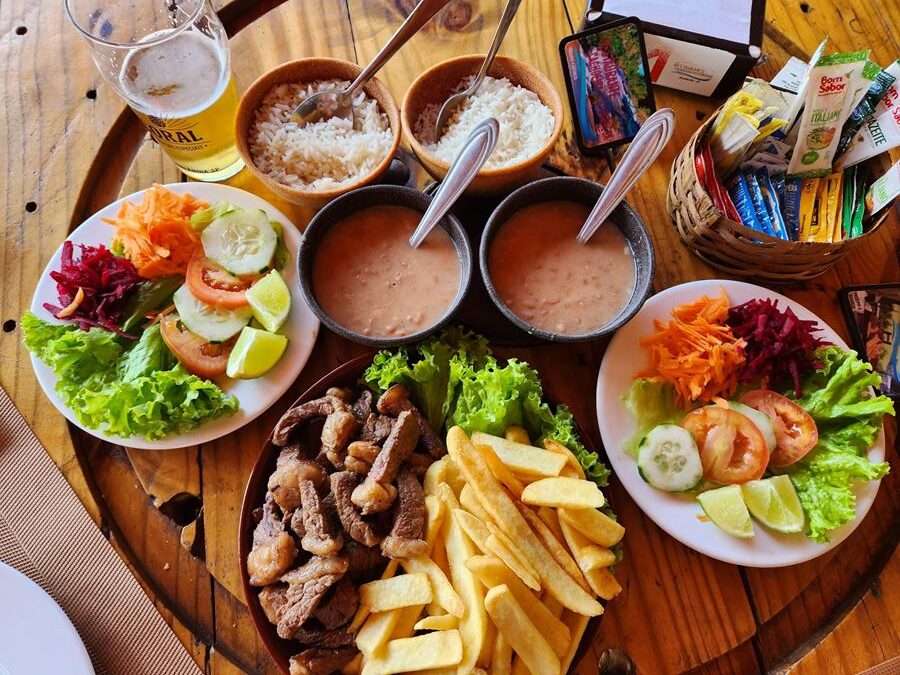 O espaço é aconchegante, o restaurante conta com uma área fechada na parte interna e externa com vista para o Cuscuzeiro, tem um playground e muita área verde ao redor.