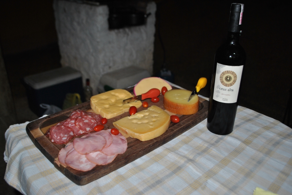 Como já disse adoramos acampar nos meses de frio, vinho, queijos, rsrsrsrs… e foi assim nossa sexta a noite, montamos a barraca no mesmo espaço mas mudamos de lado dessa vez e fizemos nossa jantinha maravilhosa.