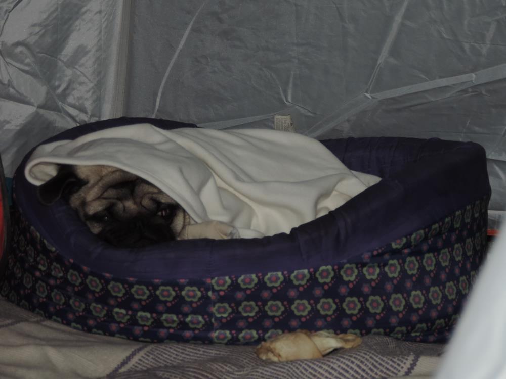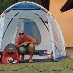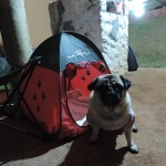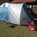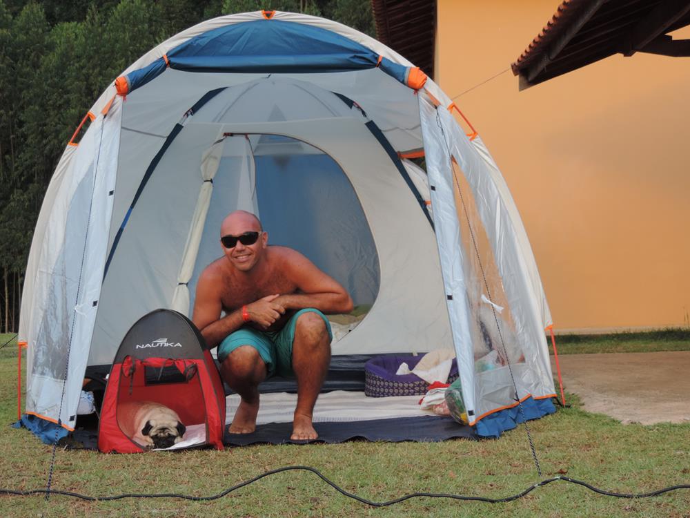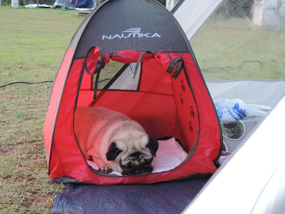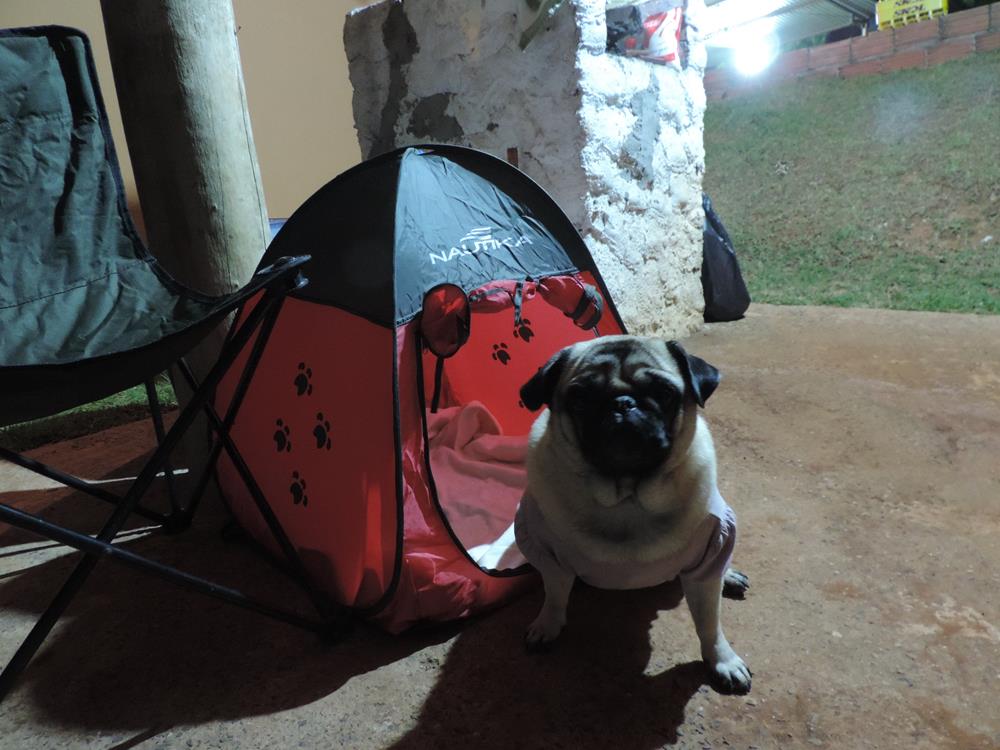 Fizemos o reconhecimento do local com nossa filha e voltamos para nossa casinha fazer o jantar (queijos e bolinha de queijo frita com um delicioso vinho tinto seco). Levei a barraca que ela possui da Nautika, linha pet, que na verdade serviu só para ela entrar um pouquino, fazer algumas fotos e um charminho. Para dormir ela dormiu dentro da nossa barraca na caminha dela que colocamos ao lado do colchão. Certo que no meio da madrugada ela pulou em cima do colchão para dormir no meio (e eu adoro)! A primeira noite com ela na barraca foi muito tranquila, me surpreendi.