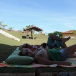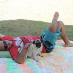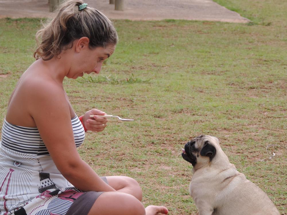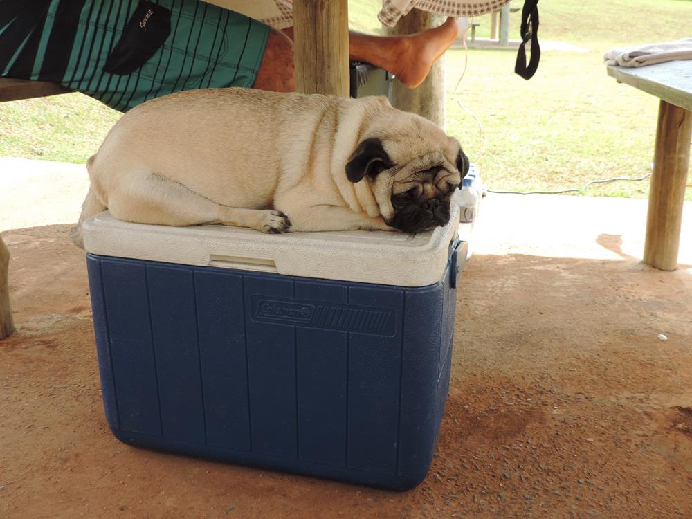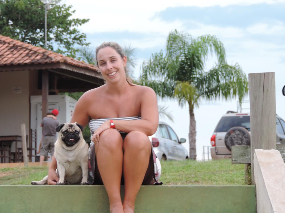 Na manhã seguinte, após o café da manhã aproveitamos para fazer algumas fotos com a Breja e dar outra volta pelo camping com ela solta. A volta demorou o triplo do que realmente demoraria porque cada pessoa que ela avistava ia “dizer um oi” e receber um carinho. Fomos pra piscina e a Bre ficou deitada em um pano que colocamos em baixo da sombra da árvore ao lado da piscina, ela adora nadar mas no camping não da né!