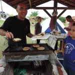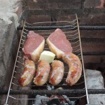 Fizemos amizade com um outro casal, e taca-lhe churrasco no jantar.
