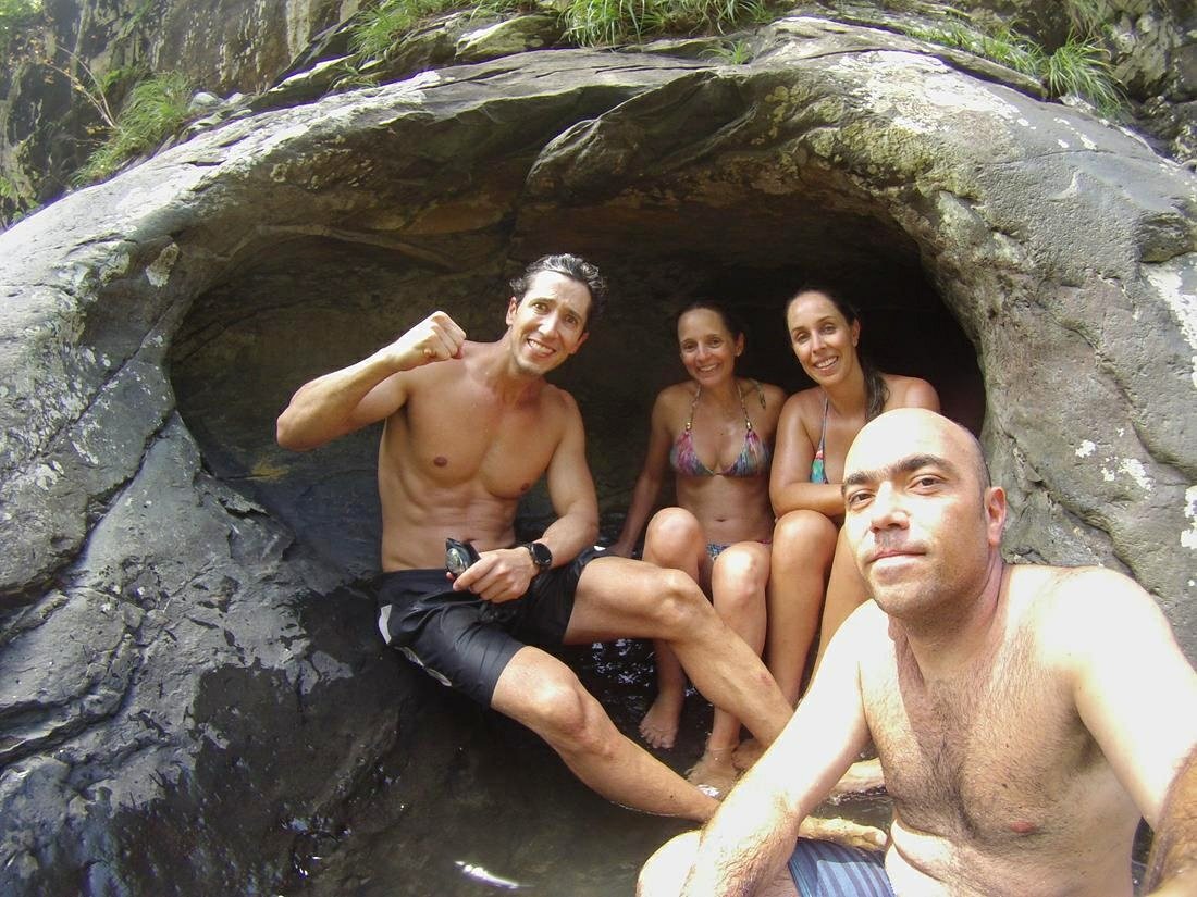 As águas termais da Fazenda Morro Vermelho ficam a 14km de São Jorge e são formadas por 3 piscinas de água quente construidas em pedra. As piscinas são rasas e o acesso é feito por uma trilha de 200m. Fomos no final da tarde e ficamos até de noite!