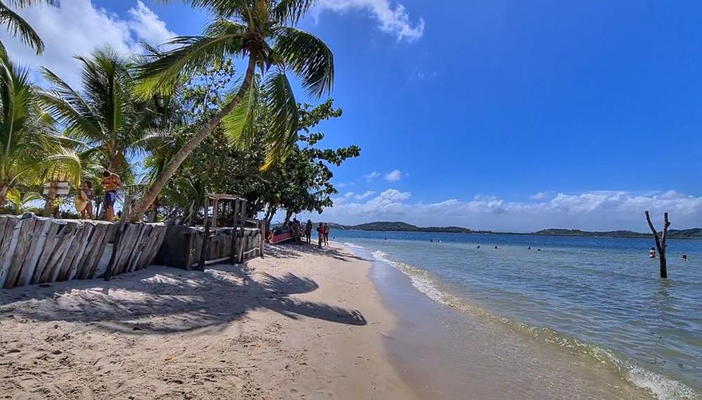 Fica localizada no povoado do Campinho e tem águas claras e profundas, ideal para a prática de mergulho. Uma curiosidade é que do outro lado da ilha, fica o final da BR030 e as ruínas do que seria um porto industrial que acabou tendo sua construção feita em Ilhéus ainda está lá.