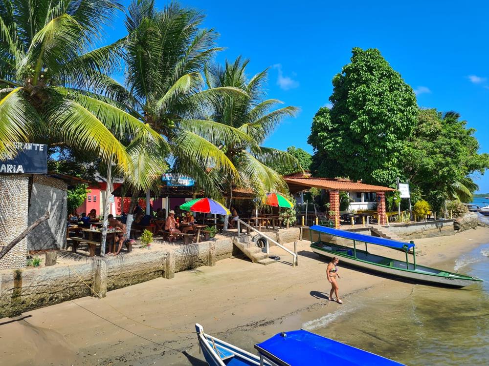 ‘Na Ilha do Sapinho que o passeio faz a parada para o almoço. Ao lado do pier encontram-se alguns restaurantes que servem deliciosos pratos da culinária Baiana. Se tiver tempo vale a pena dar uma volta pela pequena comunidade que vive por ali.