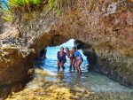 Nessa entrada o mar sempre tem correnteza e não existem restaurantes nem nenhum outro tipo de comércio (adoramos). Em outras entradas da praia existem opções de restaurantes e o movimento é mais intenso. A grande atração de Taipu de Fora é o mergulho nas piscinas naturais que formam durante a maré baixa, mas nos dias em que ficamos por lá acabou não rolando.