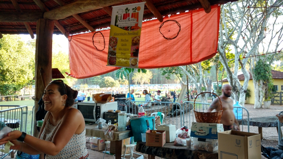 Montamos nossa barraca junto com o pessoal que estava trabalhando na produção do evento. Como em todo bom acampamento fizemos inúmeras amizades e o espírito de cooperação estava presente em todos os momentos.